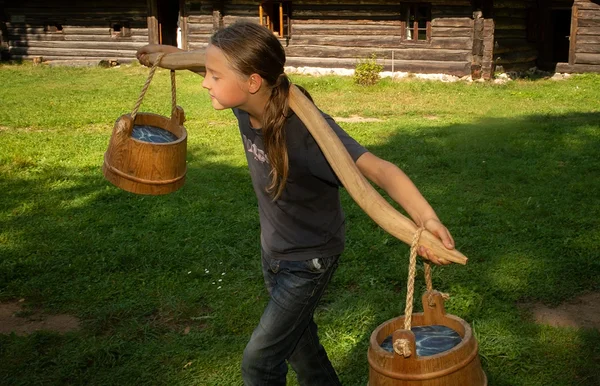 - ulkona pestä pyykkikaukalossa ja kantaa vettä nostureilla;