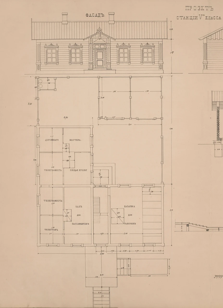 Balti raudtee V klassi jaamahoonele ettenähtud tüüpprojekt. Venemaa Riiklik Ajalooarhiiv RGIA.350.65.24