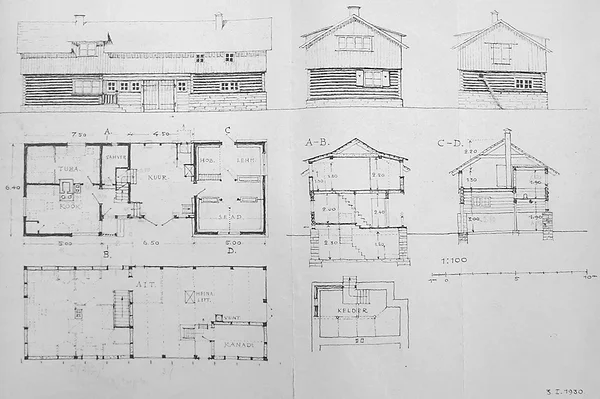 Arhitekt Anton Soansi poolt koostatud koosehituse projekt. (1930)