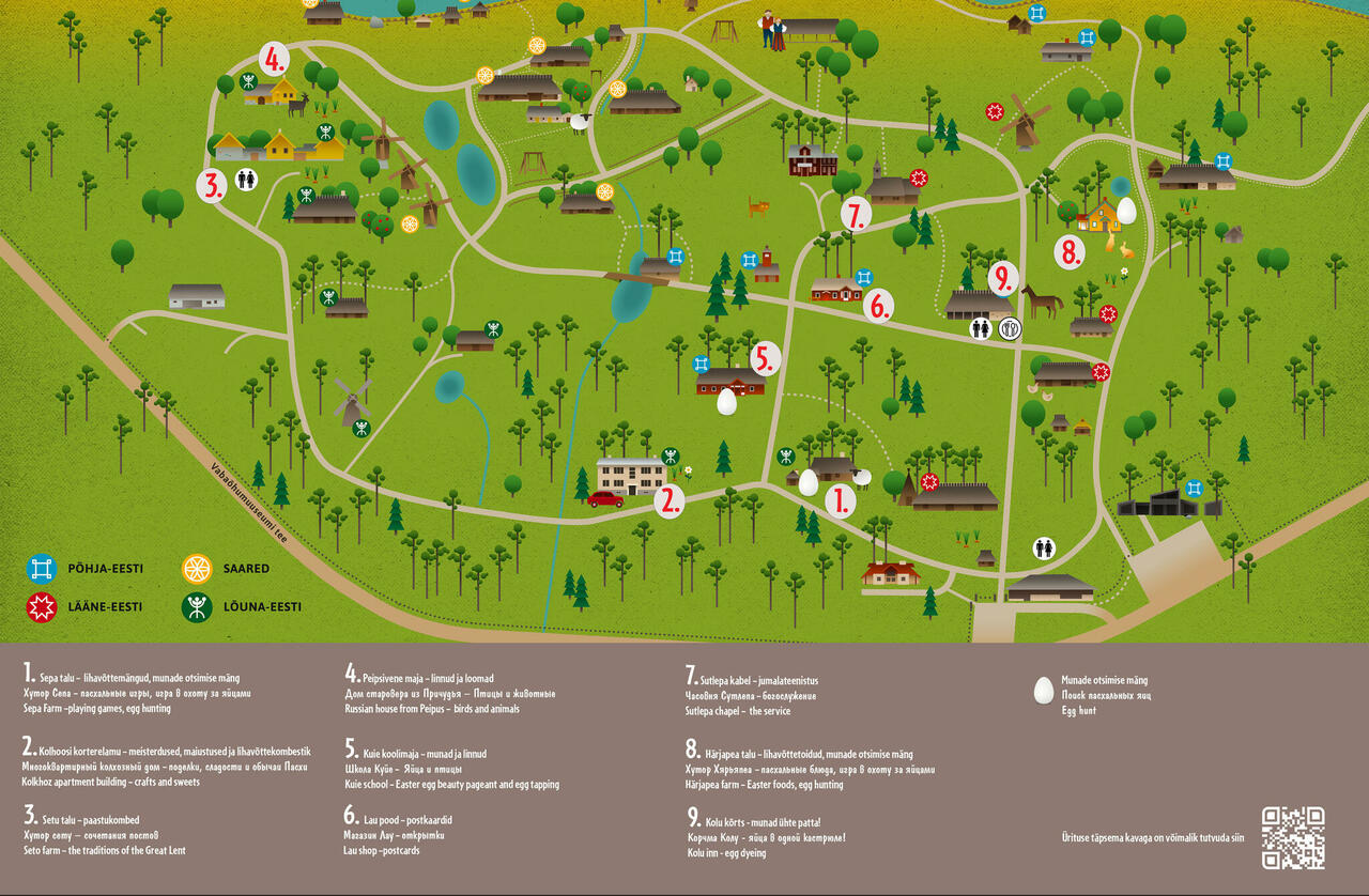 Muuseumis saab osa erinevatest kevadpühade kommetest: saab kiikuda, mängida, mune värvida ja otsida ning uurida, kuidas perenaised suurteks pühadeks valmistuvad. Ringi liigub lõbus lihavõttejänku, kellega juttu puhuda. Toimuvad ühised linnuvaatlusretked ning orienteerumismäng viib otsima lihavõtetega seotud sümboleid.